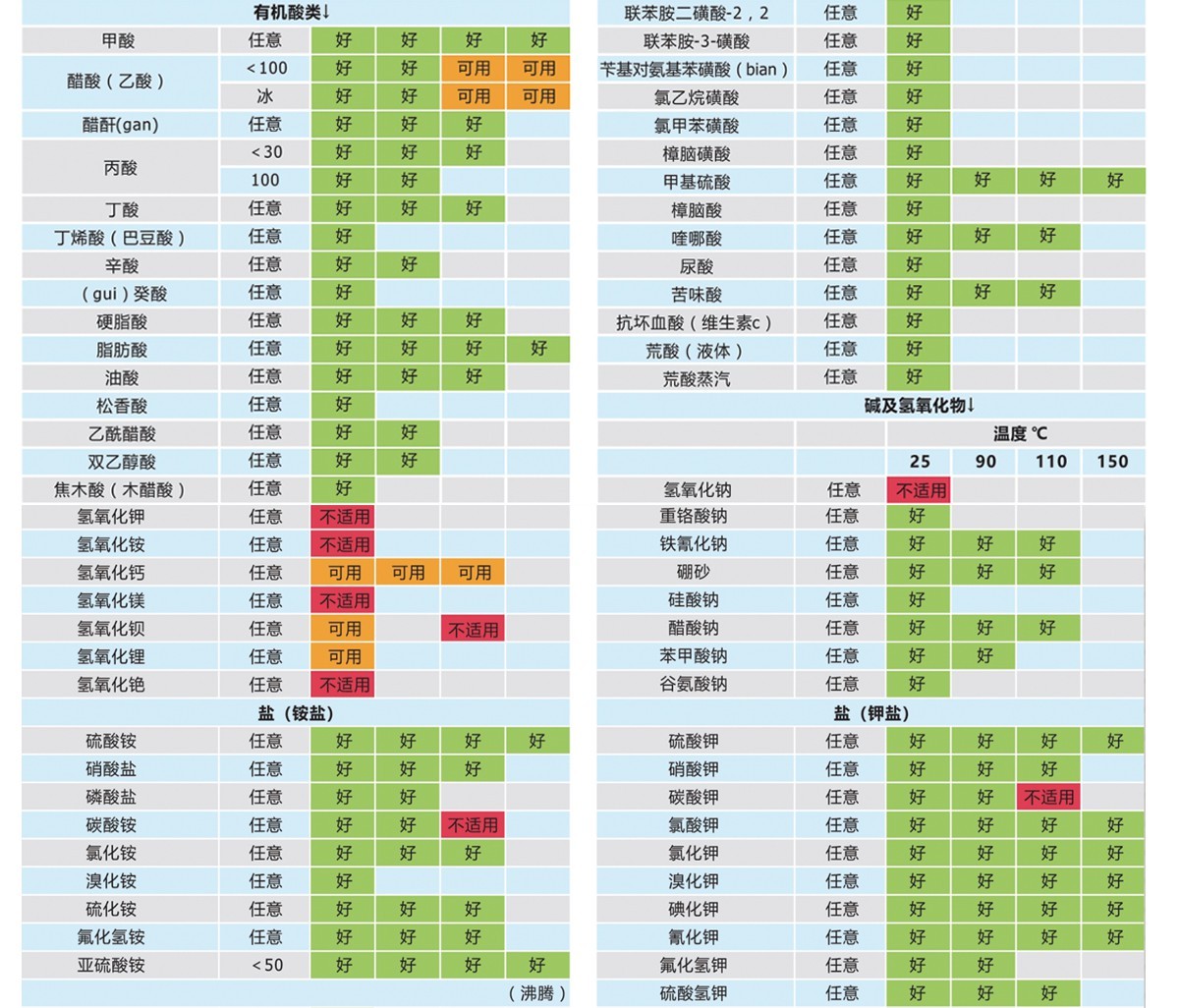 經(jīng)過實(shí)驗(yàn)和生產(chǎn)中的實(shí)際應(yīng)用,高性能復(fù)合材料真空泵可以很好的適用于抽吸氯化氫、磷酸、鹽酸、甲苯、乙醇、二氧化硫、二氯甲烷、二氯乙烷、溴化氫等多種酸性腐蝕氣體和有機(jī)溶劑(詳見纖維復(fù)合材料耐腐蝕性能表)。
